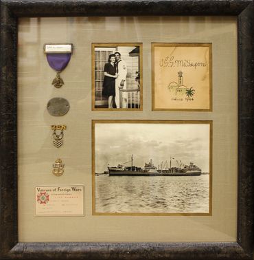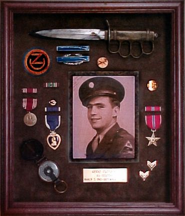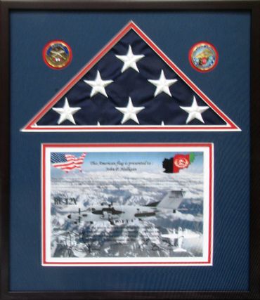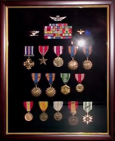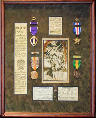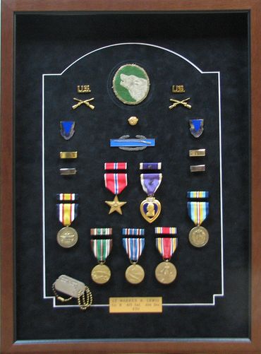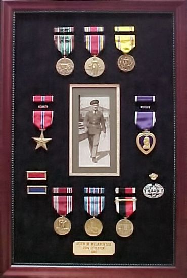 If you have a box filled with cherished memorabilia that could honor a soldier’s achievements, we have a great idea for you. We can create a beautiful frame featuring your photos, correspondence, military awards and medals and any other items you might have.