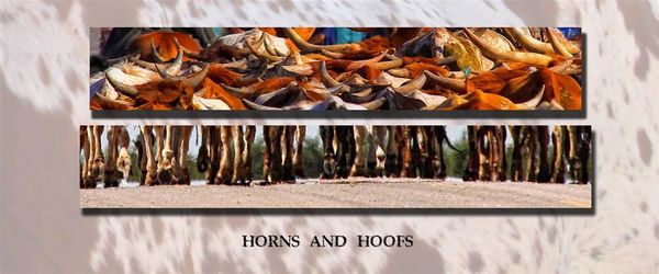 Float Style photo collage. The background is made from an enlargement with color adjustments of one of the photos of the long horn cattle.