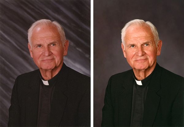We we asked to even out the background that was so distracting. While we were at it we removed the glare of his forehead and brought his face out.