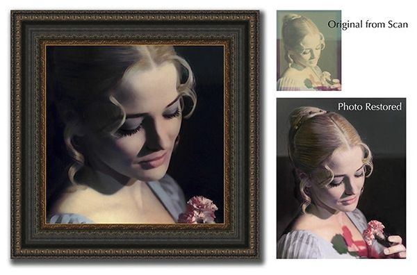 This was a heavy photo restoration that was not just cleaned up but given a few touches to emphasis the glamours qualities.