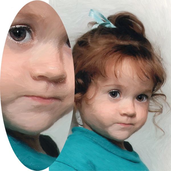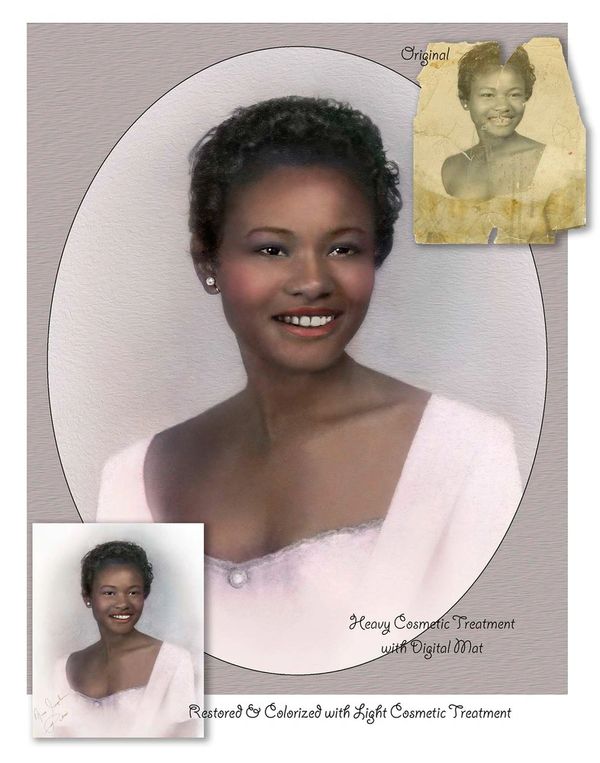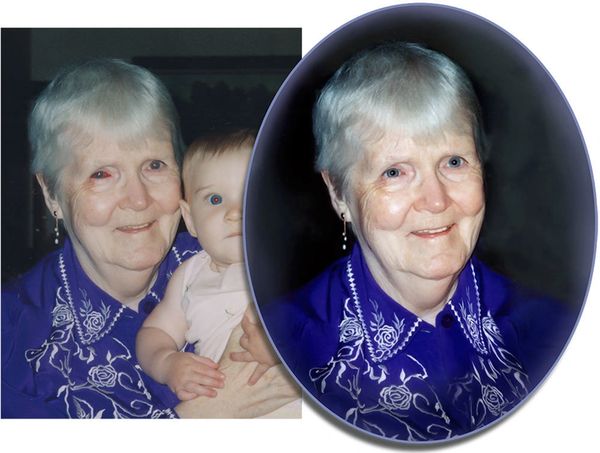 This was the best picture our customer could find for their grandmothers memorial. We fixed her damaged eye from a surgery and removed the baby.