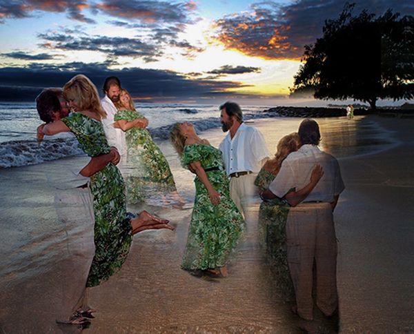 Made from two pictures down loaded from FaceBook. Crystal was given a light cosmetic treatment and then placed outside on a beach in Hawaii.