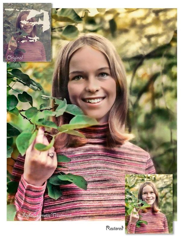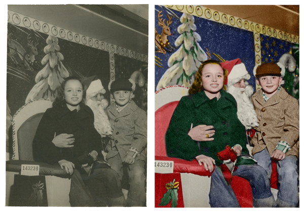 This required an extra light photo restoration with the Christmas tree being removed and the legs and feet added on.