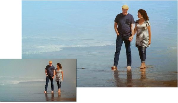 Made for her husband on their anniversary. Several shots of them on the beach where combined into one beach scene.